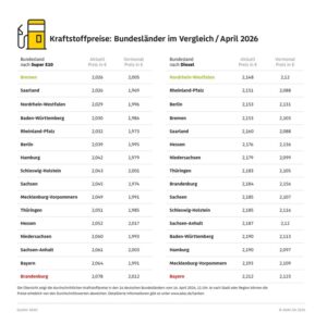 München (ots) – Die Autofahrerinnen und Autofahrer in Brandenburg und Bayern müssen derzeit deutschlandweit die höchsten Kraftstoffpreise bezahlen. Die monatliche ADAC Auswertung der Tankstellenpreise in den 16 deutschen Bundesländern zeigt, dass Super…