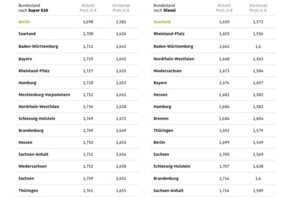 München (ots) – Im Vergleich zu anderen Bundesländern können die Autofahrerinnen und Autofahrer in Berlin und im Saarland derzeit etwas…