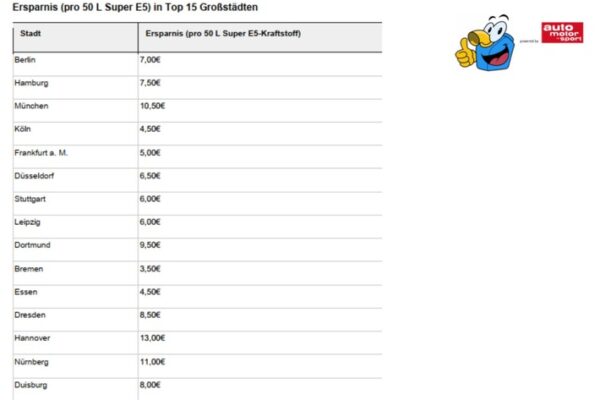 Tagesaktuelle mehr-tanken Analyse / Tanken in der Stadt: Große Einsparpotenziale innerhalb der Metropolen – vergleichen lohnt sich