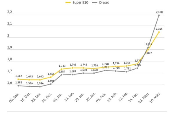 Berlin (ots) – Die Preise für Benzin und Diesel haben sich seit Beginn des Iran-Kriegs deutlich erhöht. Drohende Versorgungsengpässe und…
