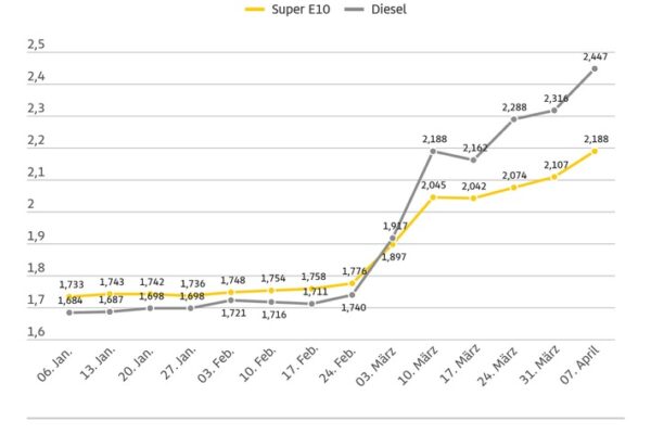 • Dieselpreis springt auf neues Allzeithoch / ADAC: Diesel verteuert sich binnen Wochenfrist um über 13 Cent / Super E10 steigt um mehr als 8 Cent / Österreich-Modell erweist sich als kontraproduktiv