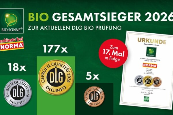 NORMA einfach Spitze auf der BIOFACH 2026: Insgesamt 200 DLG-Medaillen für die Eigenmarke BIO SONNE / Fränkischer Discounter erneut Bio-Gesamtsieger 2026
