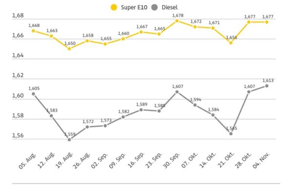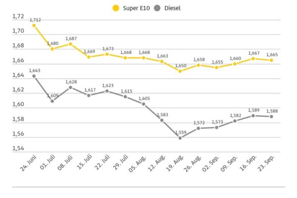 Tanken wieder etwas günstiger / Preis für einen Liter Super E10 sinkt im Vergleich zur Vorwoche um 0,4 Cent, Diesel um 0,7 Cent / Rohölnotierungen auf ähnlichem Niveau