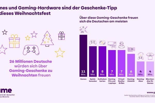 Berlin (ots) – – 26 Millionen Deutsche würden sich über Gaming-Geschenke zu Weihnachten freuen – Gaming-Geschenke bei den 35- bis…