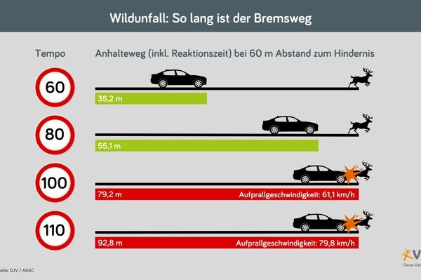 Gefahr von Wildunfällen steigt nach der Zeitumstellung / Im November und April passieren besonders viele Unfälle mit Tierkollisionen