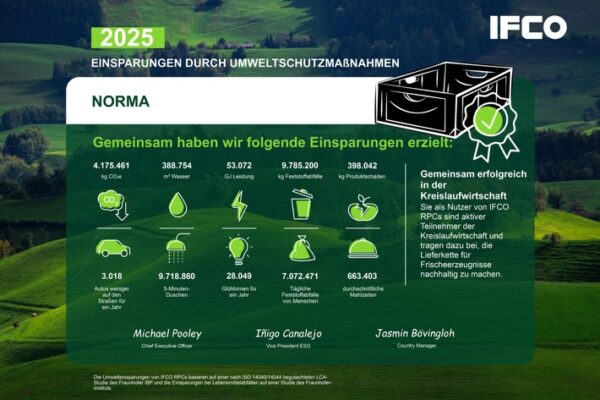 NORMA zieht mit IFCO Mehrwegsteigen starke Nachhaltigkeitsbilanz für 2025 / Mehr als 4.175 Tonnen CO2 durch ressourcenschonende Transportverpackungen gespart